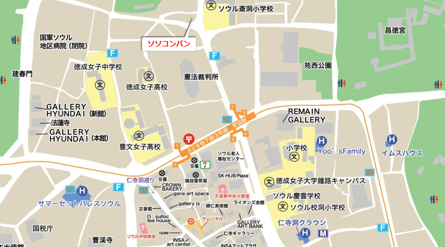 地下鉄3号線安国駅2番出口を出て約200m直進し、交差点を過ぎた向かい側。